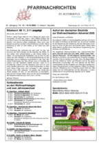 Sie sind gewohnt, dass die aktuellen Pfarrnachrichten jede Woche auf dieser Internetseite veröffentlicht werden. Wir bieten seit August 2016 an, Ihnen die aktuellen Pfarrnachrichten auch mit einer E-Mail zu schicken.