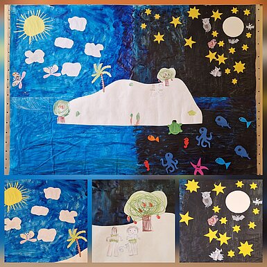 Passend zu unserem Plakat in der Halle, haben unsere Kinder die Schöpfungsgeschichte gelegt und anschließend in unserer Vocal-Booth vertont.